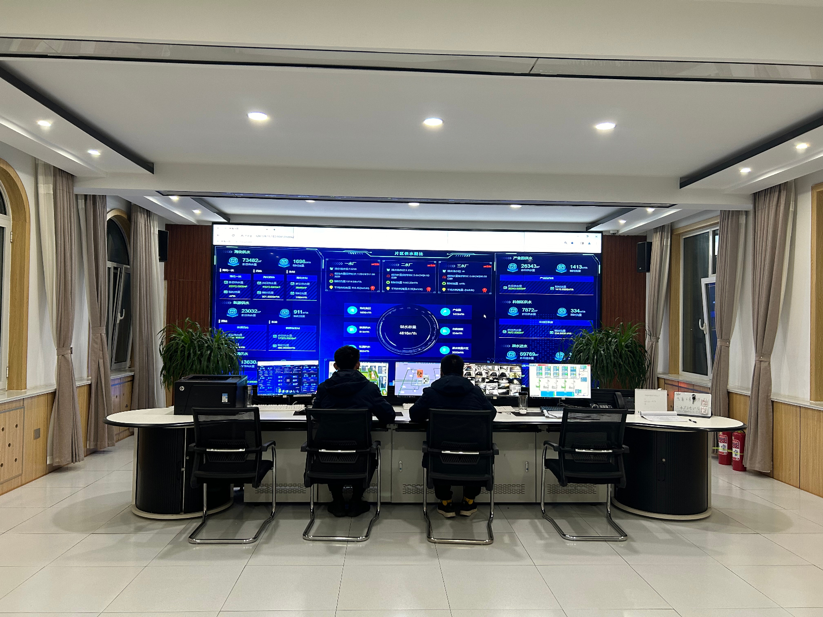 運(yùn)行調(diào)度中心,通過智慧水務(wù)平臺(tái),對(duì)水廠、加壓站等重點(diǎn)方位的供水水質(zhì)、水壓、流量等參數(shù)進(jìn)行實(shí)時(shí)監(jiān)測(cè)和預(yù)警,對(duì)供水區(qū)域內(nèi)的水壓實(shí)施遠(yuǎn)程自動(dòng)監(jiān)視和控制,確保春節(jié)期間管網(wǎng)壓力平穩(wěn)。